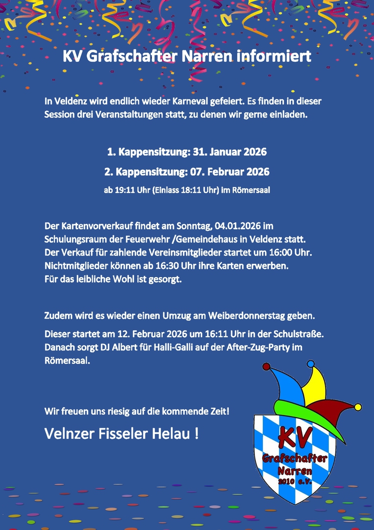 Endlich wird wieder gefeiert ! In 2026 stehen folgende Termine an: